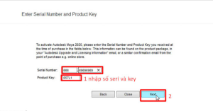 Bước 8: Chọn Active >> điền Serial Number ở trên >> Next >> Request an activation code using an offline method >> Next >> Back >> Back