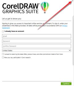 Sau khi cài đặt xong, mở CorelDRAW. Một hộp thoại đăng nhập sẽ hiện ra, bạn hãy đóng nó lại.