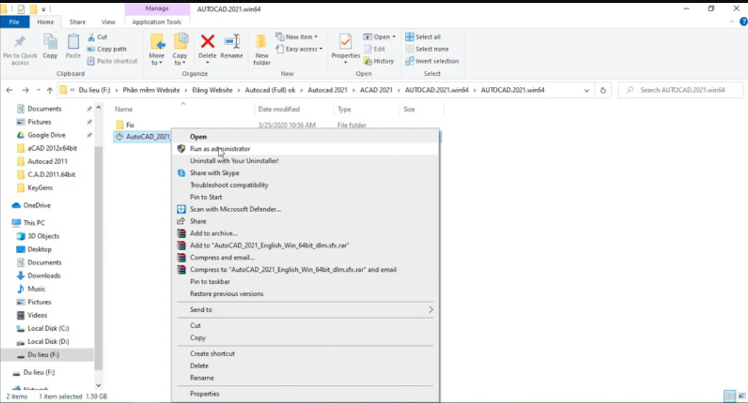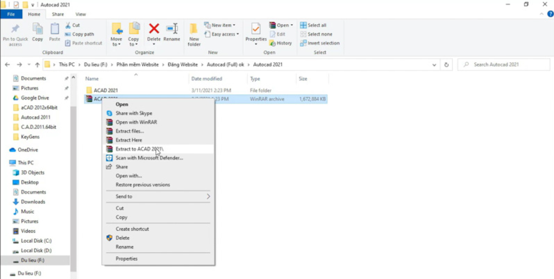 - Bước 1: Giải nén phần mềm Autocad 2021