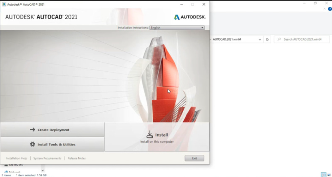 - Bước 2: Chạy File cài đặt Autocad 2021