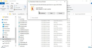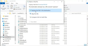 - Bước 4: Paste File acad vào thư mục sau đó chọn chọn Replace the file in the destination