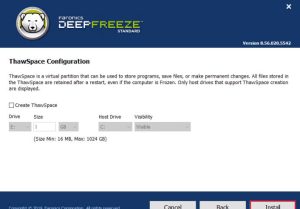 Tại đây, bạn sẽ chọn ổ cứng mà mình muốn thực hiện việc đóng băng và cuối cùng, nhấn Install để bắt đầu quá trình cài đặt.