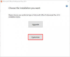 Nhấp vào “Customize” để cá nhân hóa quá trình cài đặt.