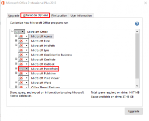 Ở phần “Installation Options”, bỏ chọn những ứng dụng không cần thiết như SkyDrive Pro và Lync.