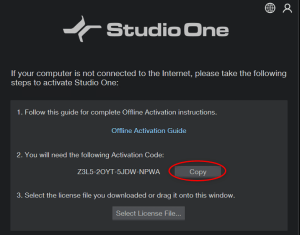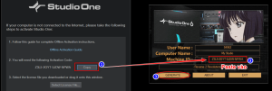 Bỏ qua bước đăng nhập và chọn “Activate Offline”. Studio One sẽ cung cấp cho bạn một mã, hãy lưu lại mã này.