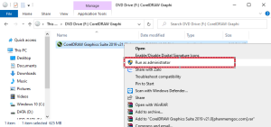 - Bước 2: Sau khi tải bản corel 2019 về, bạn tiến hành giải nén bằng WinRAR hoặc 7-Zip. Sau đó nhấp chuột phải chọn “Run as administrator” để cài đặt CorelDRAW 2019.