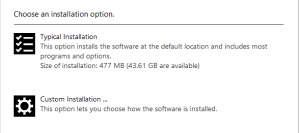 - Bước 8: Nếu bạn muốn cài full bộ thì chọn “Typical Installation“. Nếu muốn tùy biến thì chọn vào “Custom Installation…”
