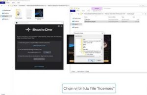 Bước 4: Trong phần mềm Studio One, chọn “Select Licenses file”. Tìm và chọn file “Studioapp5.pro”.