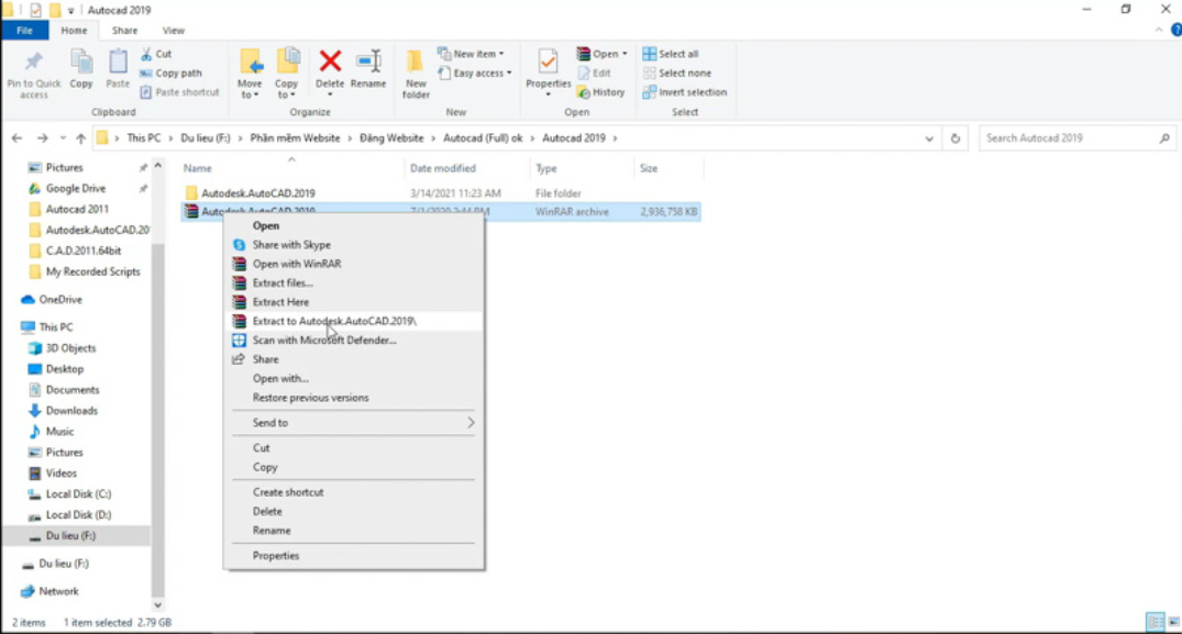 Bước 2: Giải nén File cài đặt Autocad 2019