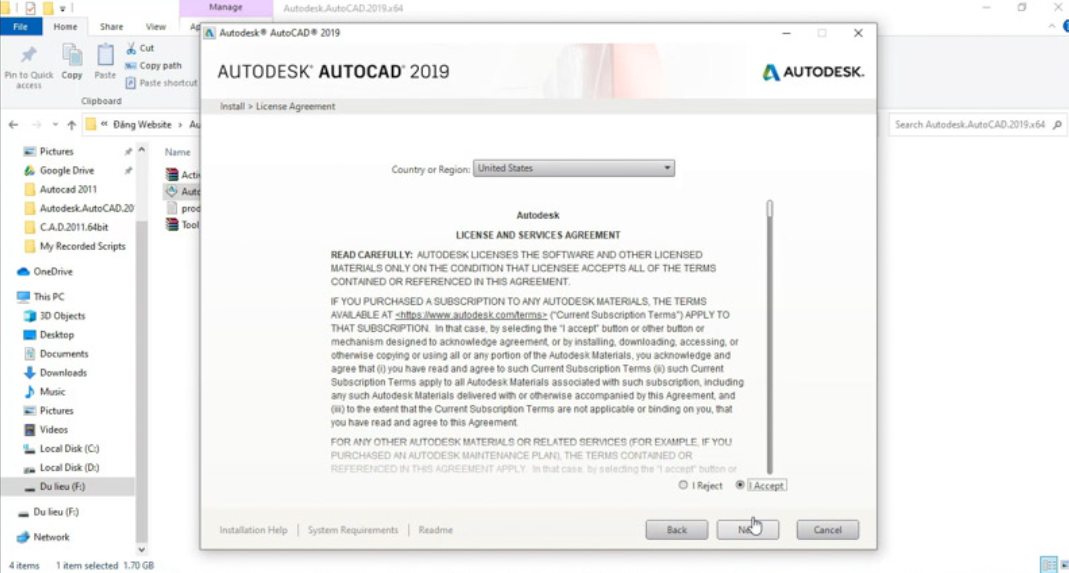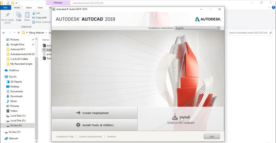 Bước 1: Nhấn vào link download, đợi tải file về rồi giải nén phần mềm Autocad 2019