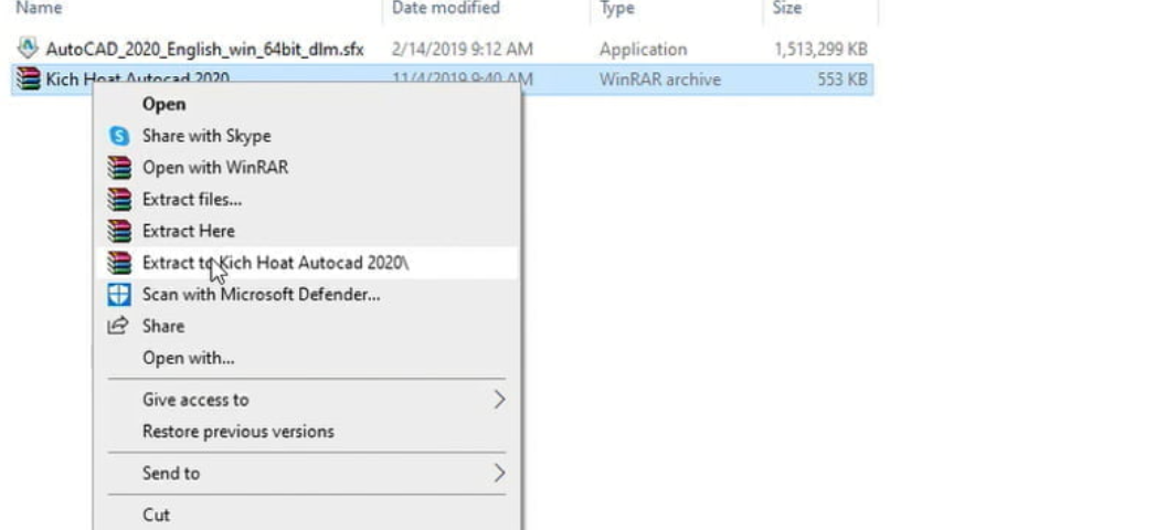 - Bước 2: Giải nén phần mềm Autocad 2020